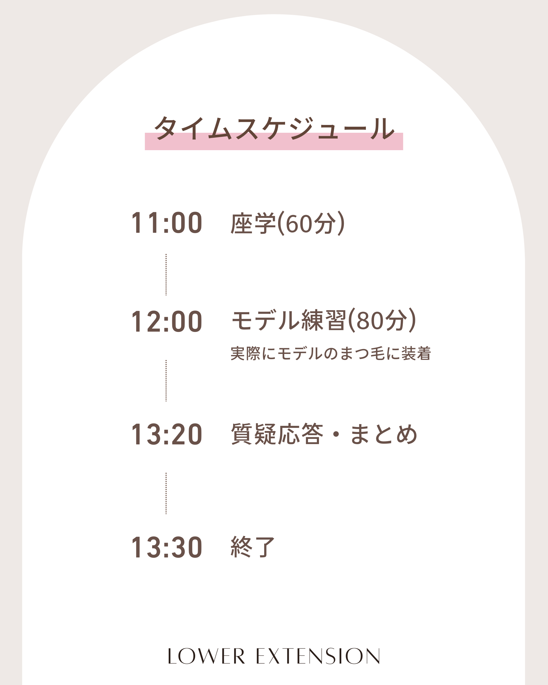 今回のセミナーで、下まつ毛の苦手克服、トラブル回避術、高持続テクニック、デザインを学び、技術に自信をつけましょう。